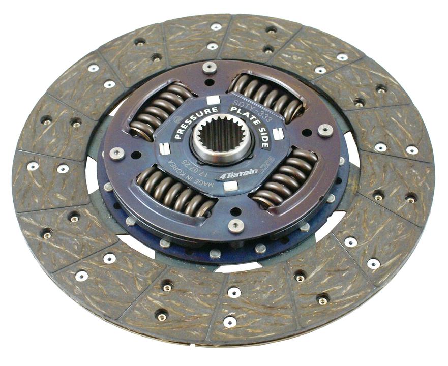 4TERRAIN DUAL FRICTION CLUTCH PLATE 4Terrain Ultimate Clutch Kits feature a dual friction clutch plate. Organic material on the flywheel side is replaced with Aramid, the same material used in bulletproof vests, for improved fade resistance and increased torque capacity due to a higher coefficient of friction. 4Terrain Ultimate plates are the ultimate for your 4x4.